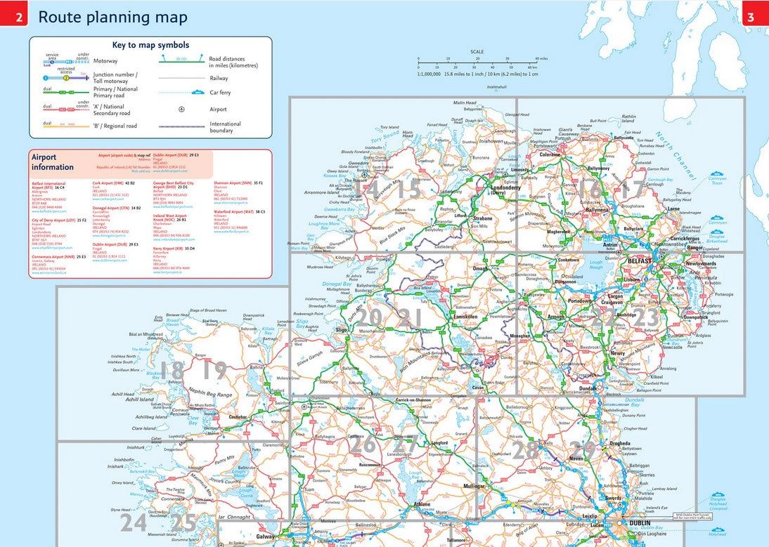 - Route planning map of the whole of Ireland at 15.8 miles to 1 inch