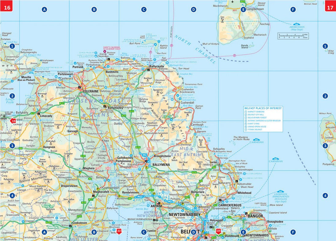 - Fully indexed street maps of 11 cities and towns – Dublin, Belfast, Cork, Limerick, Waterford,