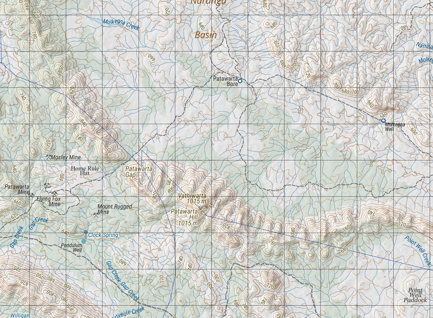From Cable Creek Bore in the NW to Second Plain Creek in the SW. Includes Gum Creek, Blinman, Alpana. Mount Mary, ABC Range (part), Owanegan Gap, Patawarta Gap, Blinman Hut, Warraweena Spring, Narrina Rd, Moolooloo, Oratunga.