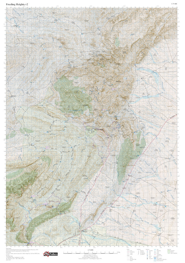 Fullers Maps at The Map Shop now include a print on demand range called the Fullers SA Recreation Series. These maps target popular destinations that South Australians like to visit for hiking and exploring. Each map is A1 in size and displays the topographic detail users want to see. The maps all use the relevant UTM grid and zone with coordinates shown around the outer edge of the map and thin grid lines across the map. Contours with numbered index lines are included on each map along with named topological features such as creeks/streams, hills/mountains, locations etc. There are of course the road and track lines as well.