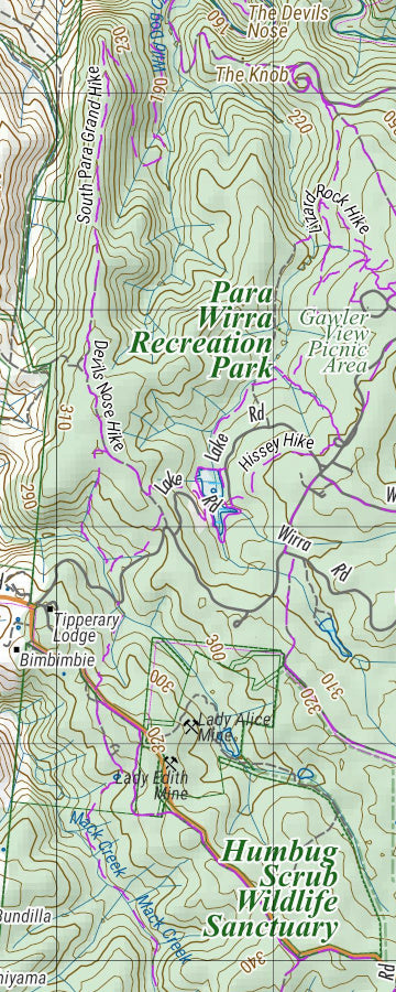 From Barossa Goldfields in the NW to Mt Pleasant in the SW. Includes Whispering Wall & Barossa Reservoir, Mount Crawford Forest, Humbug Scrub Wildlife Sanctuary, South Para Reservoir, South Para Rd, Mt Crawford, Williamstown, Cromer Conservation Park, Forreston.