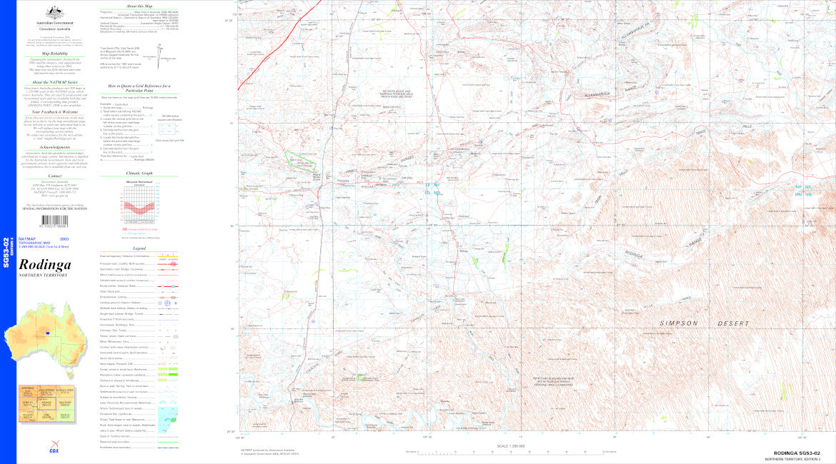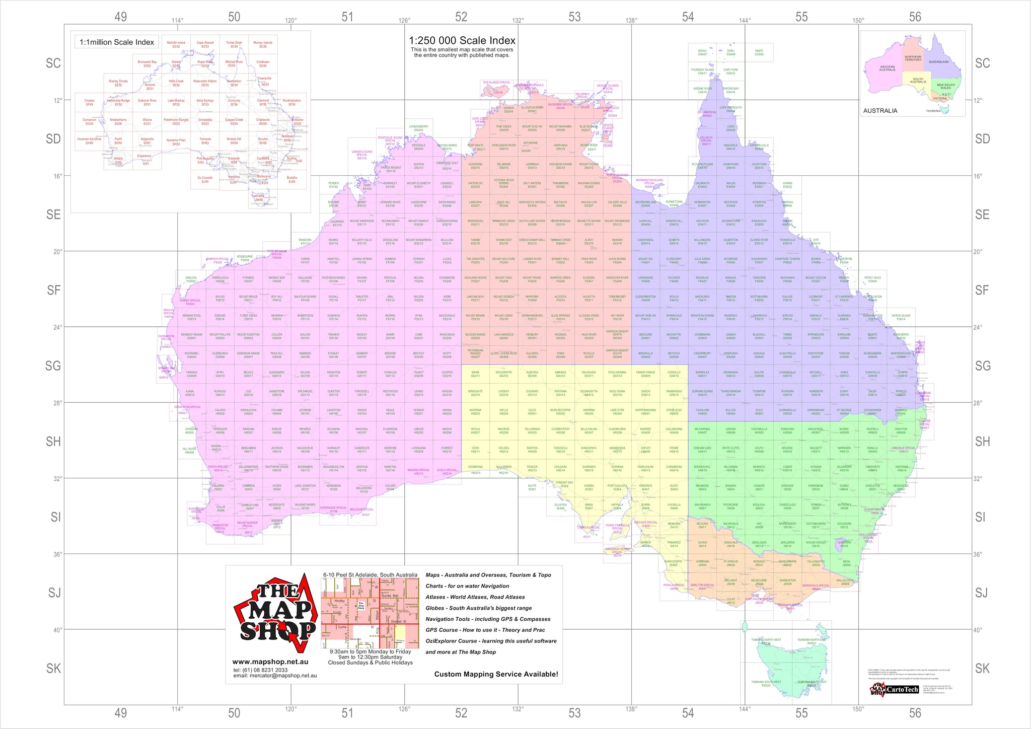 The standard medium scale series mapping for Australia. The series varies in age from the late 90's in the more isolated areas to the present time in the more popular.